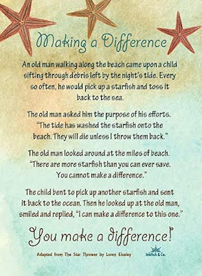 That Truth was one I never wanted to forget, especially in the midst of discouragement and seeming failure. When everything in me was screaming, "You cannot - you haven't - made a difference!" And in those times, I'd read the story, and then I'd try to do what it reminded me to do: Find the One. Remember the One. Work to help the One. "I can make a difference to this one".